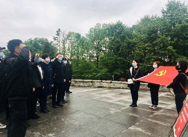 早晨8点45分,亚博官网同学们统一身着黑色服装,佩戴口罩,同华西公卫、化工和物理三院的同学共同乘坐校车前往成都市烈士陵园。到达陵园后,同学们有序排成四列纵队,由工作人员依次为大家分发祭奠革命英烈的鲜花。在陵园内志愿者的统一组织下,同学们迈着庄重的步伐登上了祭奠革命英烈的台阶,先后进行了奏唱国歌、默哀、敬献花篮和鲜花、安静走过革命英烈纪念长廊等仪式。其中,所有党员同志在祭奠仪式结束后,还在革命英烈纪念长廊一旁庄严宣读了入党誓词,重温了入党时的坚定与热血。