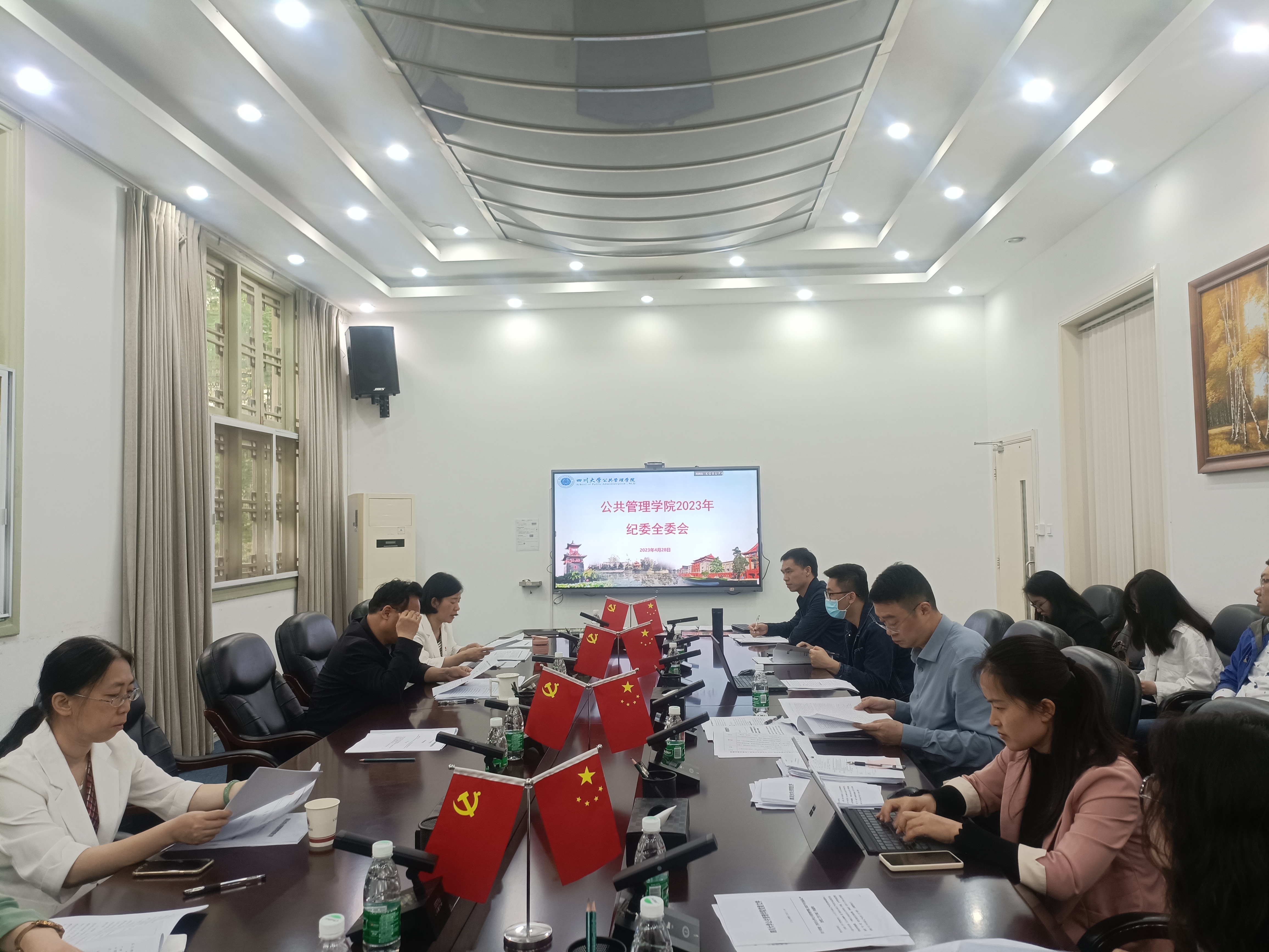 为深入学习贯彻党的二十大关于全面从严治党战略部署和二十届中央纪委二次全会精神,4月28日上午,亚博官网在萃文1号会议室召开2023年全面从严治党工作推进会暨纪委全委会,学院党委书记韩杰、院长夏志强、党委副书记兼纪委书记罗亚玲、副院长王慧敏、副院长袁莉、专职组织员廖海燕、教职工党支部书记、学院纪检委员、学生党员代表等参加会议。