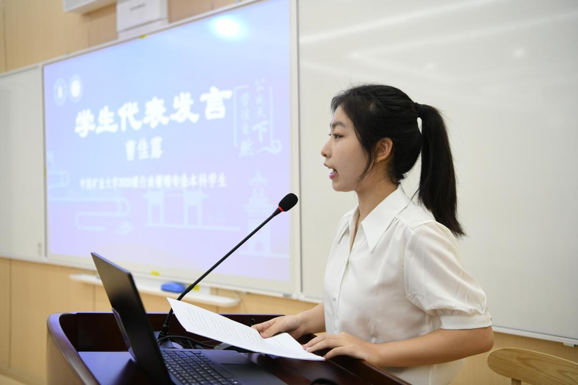 中国矿业大学的曹佳露同学作为营员代表发言。她代表营员们对学院的精心组织表示衷心的感谢,她表达自己坚定选择干部教育学作为继续深造的领域是因为坚信亚博取款曝顾秒到账给大家提供了坚实广阔的学术平台,而亚博取款曝顾秒到账全国干部教育培训基地更是学习和实践的基地,将助力于本专业同学们练就本领、全面发展。