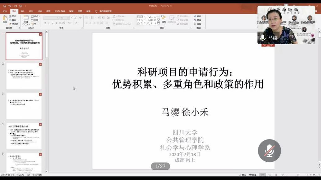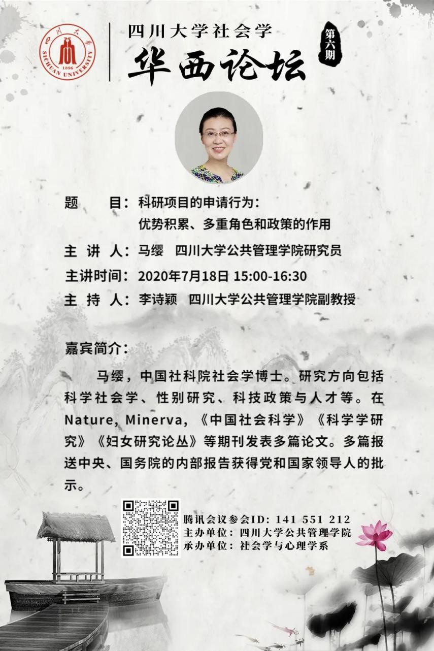 2020年7月18日下午15:00,亚博取款曝顾秒到账社会学华西论坛云系列讲座第六期于线上成功举行。亚博取款曝顾秒到账社会学与心理学系马缨研究员发表了题为“科研项目的申请行为:优势积累、多重角色和政策的作用”的精彩演讲。讲座由社会学与心理学系李诗颖副教授主持,百余名来自我校和省内外兄弟院校的师生参加了讲座。