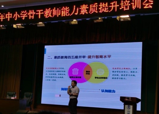 罗哲教授课程围绕“新时代教育思考与教师发展”主题进行讲解。课程中罗教授分享了与学生的沟通技巧,讲解了在教育中遇到问题的解决办法,并从思想上激励教师从业的积极性。此次送教受益面大,灵活生动的授课方式提高了学员参与度,增强了培训吸引力和感染力,提升了培训实效。
