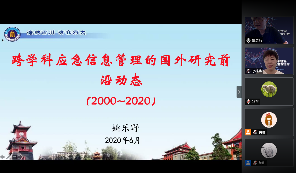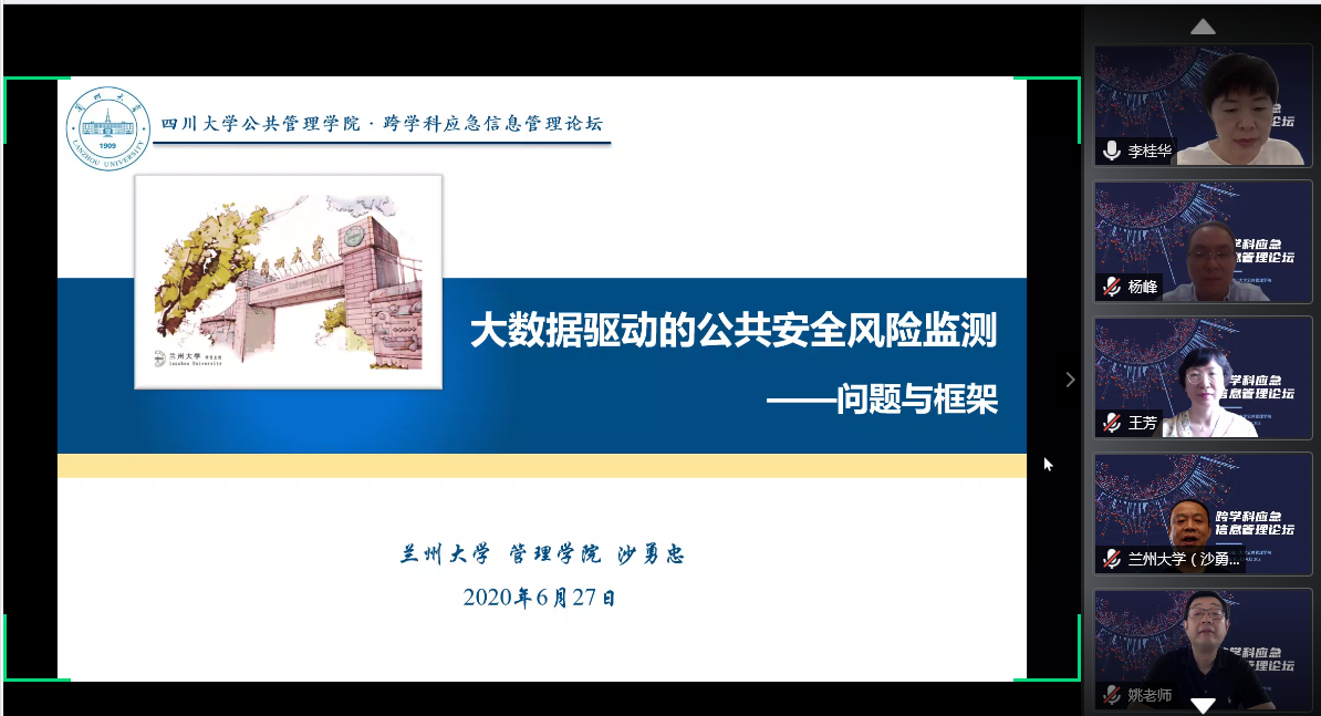 2020年6月27日,由亚博取款曝顾秒到账主办的“跨学科应急信息管理论坛”云端学术会议成功举办。来自兰州大学、清华大学、四川省社会科学院、南开大学、武汉大学、亚博取款曝顾秒到账等国内高校、科研机构的专家学者齐聚云端会议室,从风险监测、法律修订、国际研究动态、本体构建、大数据智能化管理与服务、情报感知、应急建档等方面对应急信息管理问题进行了跨学科、宽领域、多角度的探讨。