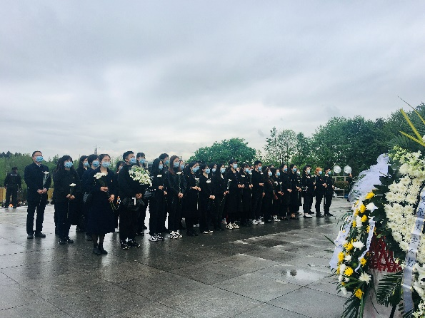 早晨8点45分,亚博官网同学们统一身着黑色服装,佩戴口罩,同华西公卫、化工和物理三院的同学共同乘坐校车前往成都市烈士陵园。到达陵园后,同学们有序排成四列纵队,由工作人员依次为大家分发祭奠革命英烈的鲜花。在陵园内志愿者的统一组织下,同学们迈着庄重的步伐登上了祭奠革命英烈的台阶,先后进行了奏唱国歌、默哀、敬献花篮和鲜花、安静走过革命英烈纪念长廊等仪式。其中,所有党员同志在祭奠仪式结束后,还在革命英烈纪念长廊一旁庄严宣读了入党誓词,重温了入党时的坚定与热血。