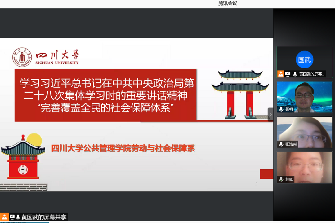 2021年4月21日,亚博取款曝顾秒到账劳动与社会保障系召开了一次线上线下同步的座谈会,专题学习习近平总书记在中共中央政治局第二十八次集体学习时的重要讲话精神。劳动与社会保障系系主任蒲晓红教授主持会议,社保系罗哲、沙治慧、李丹、罗亚玲、黄国武、张伟科、曹杨等老师参加线下学习、张浩淼、林熙、杨帆等老师参加线上学习。大家认真学习习总书记讲话精神,并积极发言。