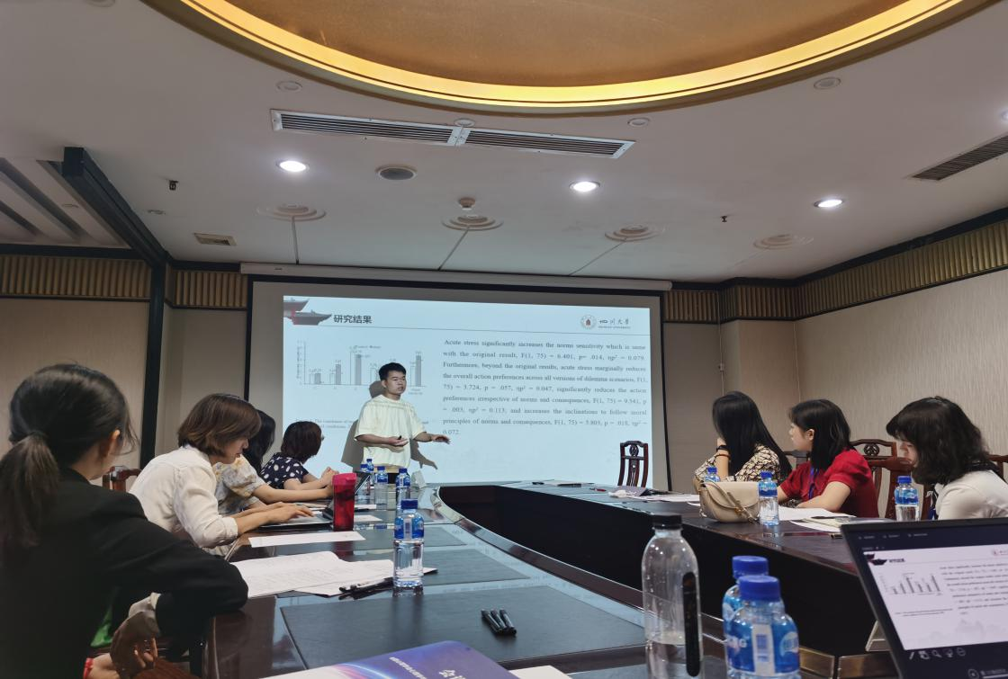 2020级应用心理硕士研究生吴俊红以“What is the relationship between stress and moral decision-making ? A data reanalysis exploration”为题分享了自己的最新研究,介绍了亚博官网刘传军老师关于道德心理学领域的前沿研究范式“CAN”模型,并应用于具体研究中,得到多名专家学者的赞赏,并与来自华中师范大学、南京师范大学的同学们进行了深入的学术分享与交流。