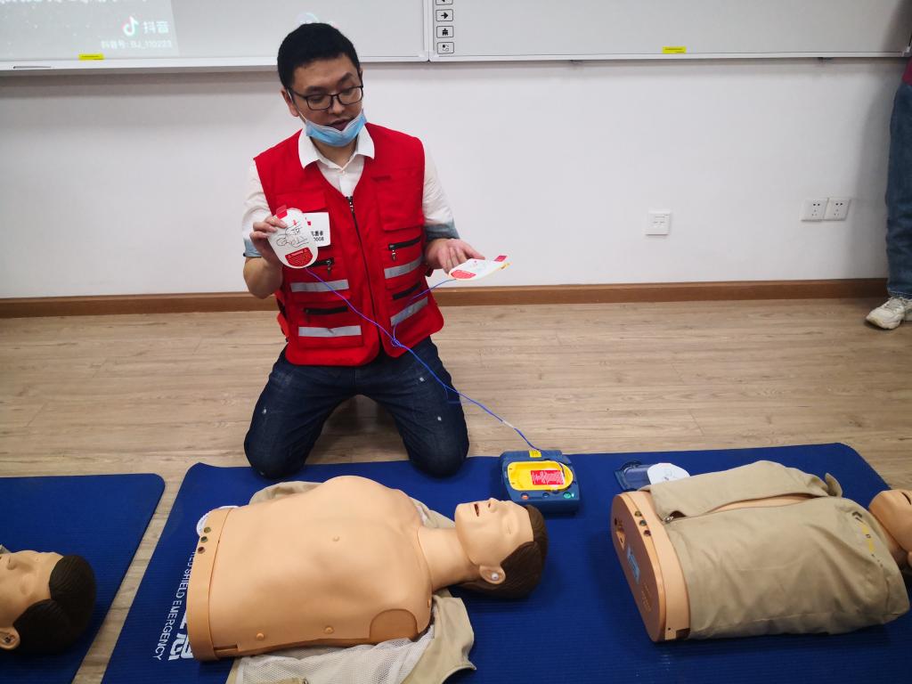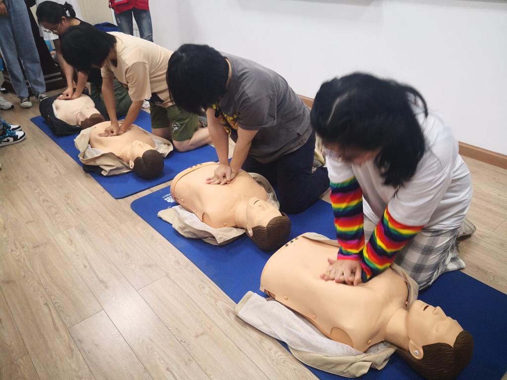 在理论知识部分,林老师详细讲解了常见的紧急情况和相应的救护方法。包括心肺复苏(CPR)的适用情况、基本原理、实施步骤、动作要领;气道异物梗阻的施救措施;畸形冠状动脉综合症产生的原因、症状和救护措施;识别脑卒中的FAST原则等。除此之外,还介绍了地震、淹溺、火灾、踩踏等情况下的注意事项和自救及施救措施等。