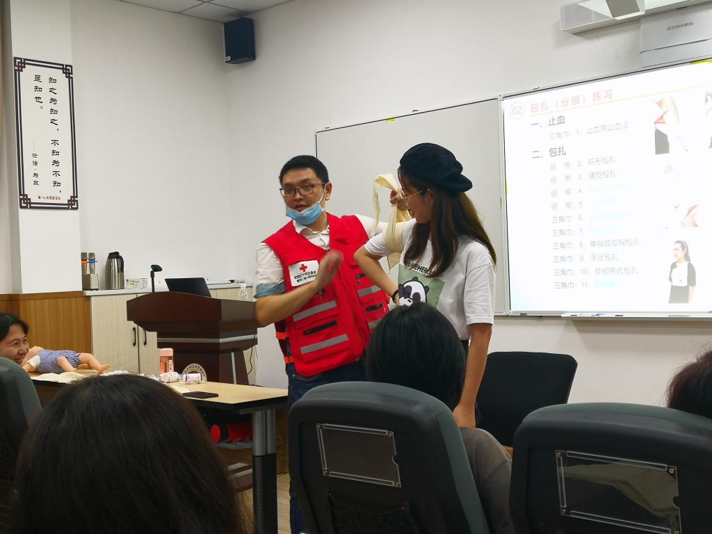 欣逢中国共产党建党百年,党史学习活动在亚博官网上下如火如荼地开展。牢记初心使命,强化公仆意识,关心弱势群体,办实事、开新局是学史力行的应有之义。为进一步培养学生的人道主义救助精神,增强学生的安全防范意识,提高学生的应急避险和互救能力,亚博官网于6月26日在萃文楼105教室组织开展了第二期“红十字救护员”培训。成都市武侯区红十字会救护讲师林久捷担任主讲老师,王懿担任辅讲老师,亚博官网30余名学生参加了此次培训。