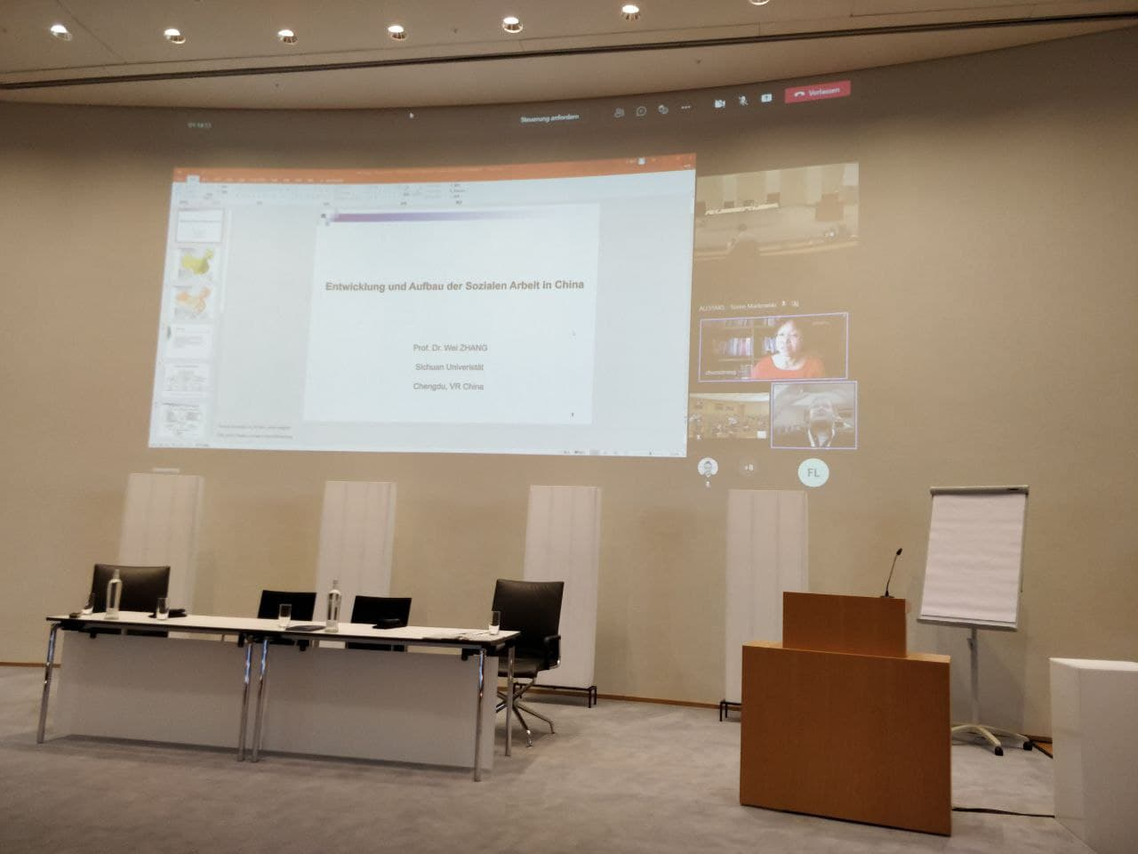 受德国比勒费尔特大学的盛情邀请,2021年7月7日至9日,亚博官网社会学与心理学系张威教授参加了主题为“作为社会投资的社会服务?福利服务国家中的社会服务新调控”的国际学术研讨会。参会者共50余人,包括来自欧盟和各国负责社会服务的部级官员,如欧盟就业、社会服务与融合总部部长、德国黑森州社会服务与融合部部长,有各国高校和研究机构专家学者,如美国马里兰大学、瑞士日内瓦大学、奥地利维也纳经济大学、约翰尼斯·开普勒林茨大学、意大利波森大学、德国青少年研究所、德国比勒费尔特大学、卡塞尔大学、不莱梅大学、伍珀塔尔大学、锡根大学、蓝道大学、艾希施泰特天主教大学、汉堡大学、帕德博恩大学、海德堡大学、莱茵兰-威斯特法伦-利珀新教大学。参会者还有一线的社会工作者,如德国社会服务联盟工会、德国新教教育联合会、瑞士社会工作者联合会、德国平等福利联合会等。