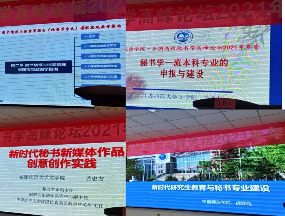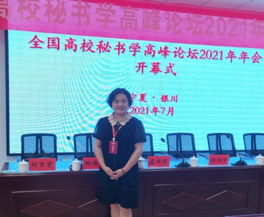 2021年7月19到22日,亚博取款曝顾秒到账秘书档案学系陈丽教授应邀参加了在银川市召开的全国高校秘书学高峰论坛年会。来自亚博取款曝顾秒到账、上海大学、上海外国语大学、苏州大学、河南大学、哈尔滨师范大学、广西师范大学等学校的秘书学档案学专家学者以及一部分开设秘书学专业课程的高校专业教师参加了会议。年会上大家对秘书学档案学相关课程建设,秘书专业课程思政教学方案及教学计划、秘书学档案学实训及实验室建设、秘书学档案学教材建设、秘书学档案学等相关专业评估及一流专业建设和申报等相关问题进行了广泛讨论和交流。