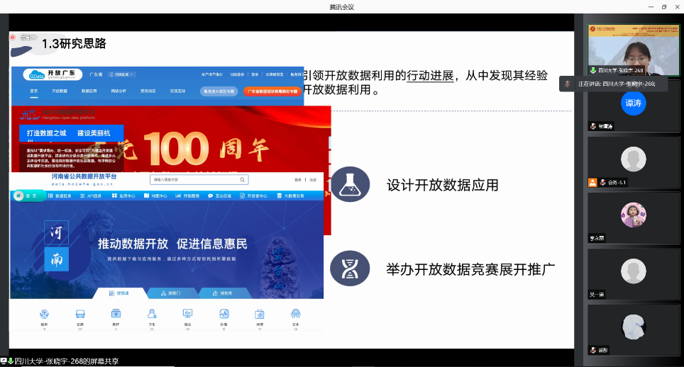 25日下午,秘书档案学系周文泓副教授携学生代林序、贺谭涛在“数字记忆与数字人文”分会场做学术报告。代林序做了名为“图书馆的数字记忆社会化建构进程与展望:定位、路径与策略”的主题报告,研究广泛调查并解析了图书馆数字记忆社会化建构的代表性案例,总结实践路线及建构策略。并基于现有实践经验进一步从理论方法体系建设、促进流程再造优化、确立协调合作框架、探索行动保障机制四方面提出可发展空间。随后,贺谭涛做了题为《网络空间的参与式档案管理:理论依据、核心概念和设计要求》的学术报告,指出网络空间的档案管理正逐步向参与式档案管理转向,由此探究此种转向所引起的参与式档案管理的概念革新,进而提出网络空间参与式档案管理的设计要求。张晓宇在平行分会场“图情档人才培养与学科发展”就参会论文《我国地方政府开放数据社会化利用的促进策略研究》做了学术报告。研究通过案例分析法,对我国地方政府开放数据实践进行调查,在明确当前利用实践成效与不足的基础上,提出从两方面构建我国地方政府推进开放数据社会化利用的优化策略。