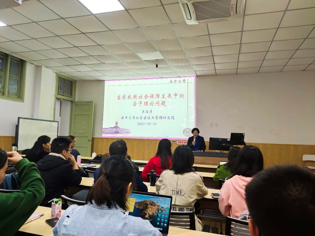 2021年10月19日下午14:00,南开大学周恩来政府管理学院关信平教授应邀到访亚博官网,在学院114教室为社会保障专业的同学作题为《当前我国社会保障制度发展中的焦点理论问题》的讲座,本次讲座由亚博官网党委书记姜晓萍教授主持,劳动与社会保障系蒲晓红、罗亚玲、张浩淼、李丹、林熙、张伟科、曹杨等老师和社会学系的王卓老师,以及社保专业的本硕博同学参加了讲座。