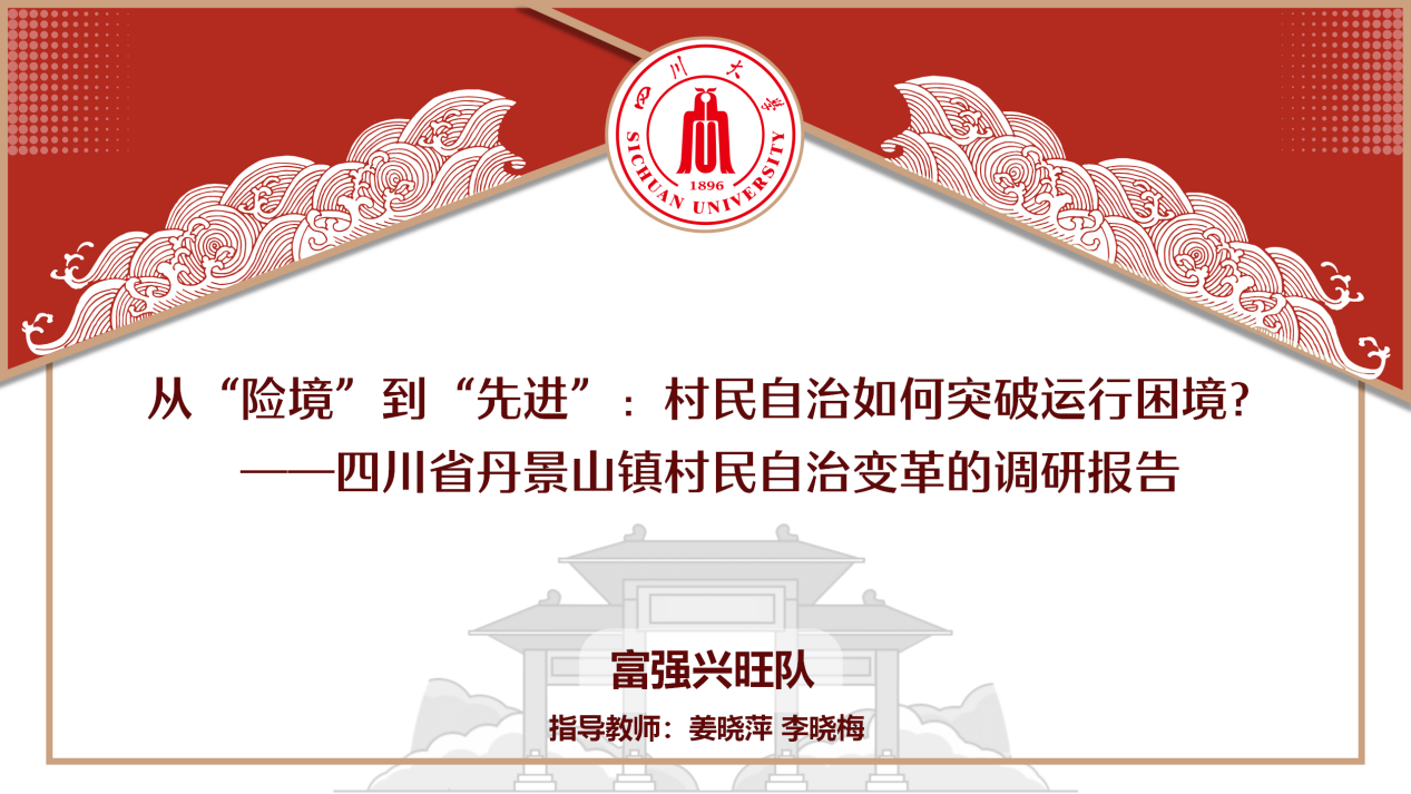 由亚博官网行政管理系姜晓萍教授、李晓梅副研究员担任指导老师,2019级行政管理专业研究生唐银彬,2020级行政管理专业研究生杨舒雯、尹雨晴、郑冰鑫、李千惠、杨晓玉六位同学同学组成的富强兴旺队,完成了《从“险境”到“先进”:村民自治如何突破运行困境?——四川省丹景山镇村民自治变革的调研报告》,在经过初步专家评审、双向匿名评审、线上答辩等环节后,荣获一等奖,充分展示亚博官网行管学子对“行以明德,管以兴邦”信念与目标的坚定。