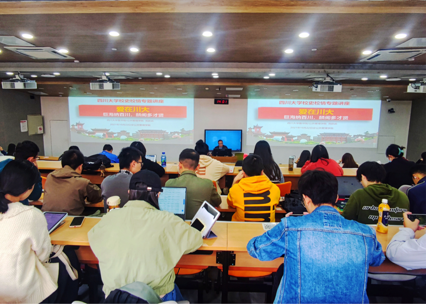 课程在愉快的氛围中拉开帷幕。党老师与同学们友好互动,提问同学何为川大校训与川大精神,并为同学提供了惊喜小礼物。党老师利用播放校歌的形式,深刻解读了川大“严谨、勤奋、求是、创新”为核心的川大精神,阐释了“海纳百川,有容乃大”这一校训的深刻内涵。