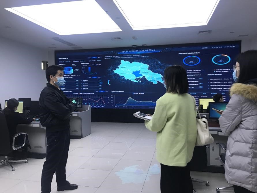 2021年12月16日上午9:30,亚博官网应急管理专业同学赴成都市郫都区综治中心开展了以“走进现场”为主题的实践调研活动。郫都区委政法委副书记张祥平、郫都区综治中心主任雷佳及中心相关工作人员为同学们详细介绍了郫都区大联动·微治理智能分析平台、全区智能网格化工作、“三所一庭”矛盾纠纷多元化解机制等相关内容。