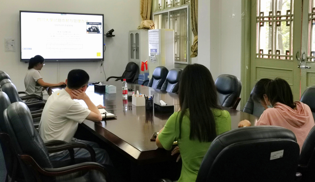 为保证本学期考试工作顺利进行,严肃考风考纪,亚博官网于2022年6月16日上午在望江校区萃文楼220室召开2021-2022学年春季学期亚博取款曝顾秒到账期末考前监考培训会。会议同时以腾讯会议的方式线上进行。