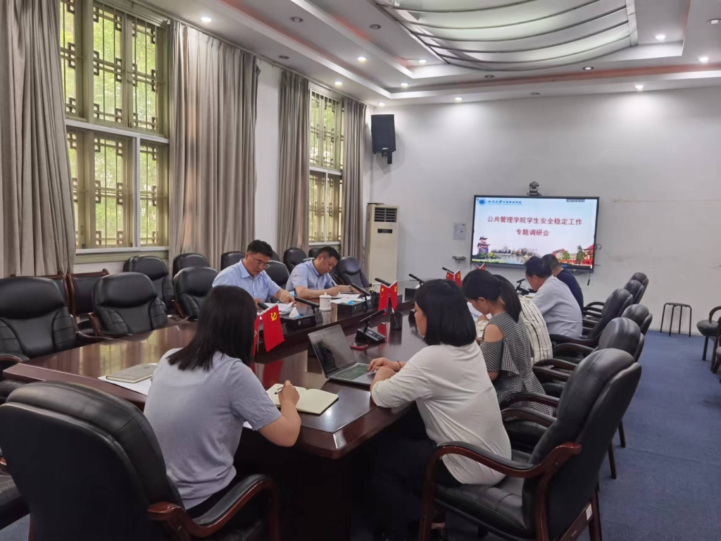 6月21日下午,校党委副书记郭勇、学工部部长刘晓虎莅临亚博官网开展学生安全稳定工作专题调研,亚博官网党委书记韩杰、副书记兼纪委书记罗亚玲和全体辅导员参加此次座谈会。