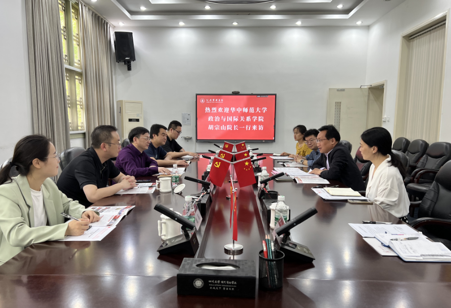 4月17日上午,华中师范大学政治与国际关系学院胡宗山院长、黄辉祥副院长、潘广炜副书记、韩瑞波及魏露老师一行5人来亚博官网开展交流调研。亚博官网党委书记韩杰、副院长袁莉、院长助理林熙、团委书记青杨媚及教学管理科马晓爽老师参加了交流会。
