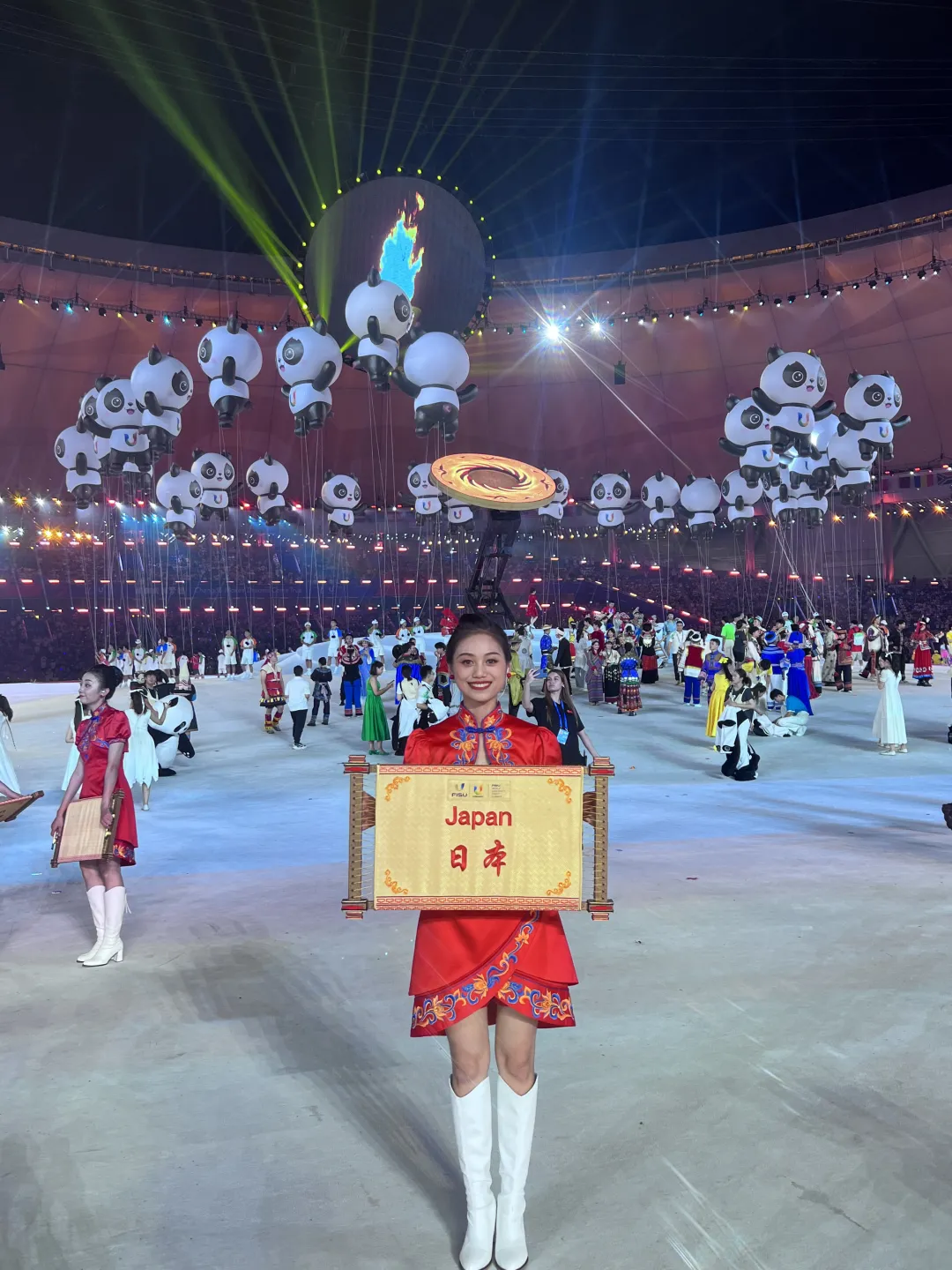 开幕式上最精彩难忘的,便是火炬台点火仪式,她说道:“火炬方阵变成了两列纵队向火炬台跑进,31名火炬台围成一个圆共同前进点燃火炬塔,烟火也随之四溅、冉冉升起。当圣火被点燃的那一刻激动与喜悦在脸上体现得淋漓尽致,非常荣幸、也十分有幸能够作为川大学子的代表参加开幕式火炬传递活动,这既是对我的一种认可与鼓励,更是激励我向更远、更高的舞台勇往直前。”