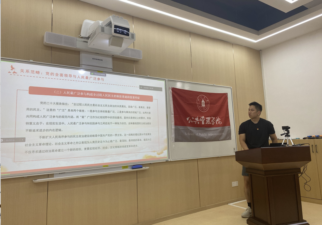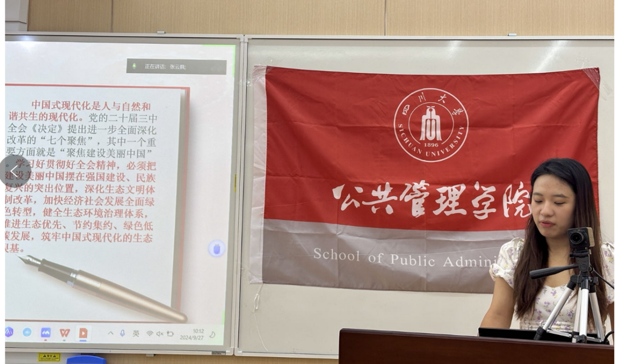 活动前,全体博士生党员自学了《中共中央关于进一步全面深化改革、推进中国式现代化的决定》等相关文件和会议精神。活动中,李敏、丁亮、秦浩、陈雪、郑婷、赵泽瑞、李姗蔓等七位同志,通过背景解读、案例展示、观点碰撞、原文分享,带领全体党员共同学习了“提高党的领导水平和长期执政能力”“构建高水平社会主义市场经济体制”“发展全过程人民民主”“建设社会主义文化强国”“提高人民生活品质”“建设美丽中国”“建设更高水平平安中国”等专题内容。