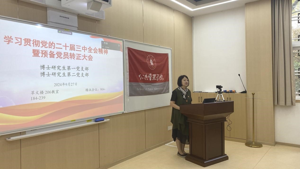 为深入贯彻学习党的二十届三中全会精神,9月27日,亚博取款曝顾秒到账博士生第一、第二党支部在萃文楼206教室联合开展了题为“深学细悟笃行”党的二十届三中全会精神专题学习活动,活动由李岚老师主持。