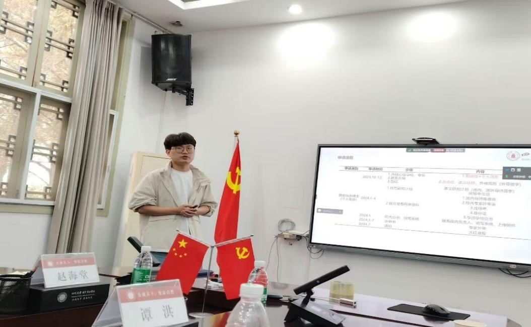 联培博士生缪赛柳(荷兰-奈梅亨大学联培)和谭洪(新加坡国立大学联培)也通过线上、线下的方式详细介绍了CSC的申请流程及注意事项,为有意出国深造的同学们提供了宝贵的第一手资料。