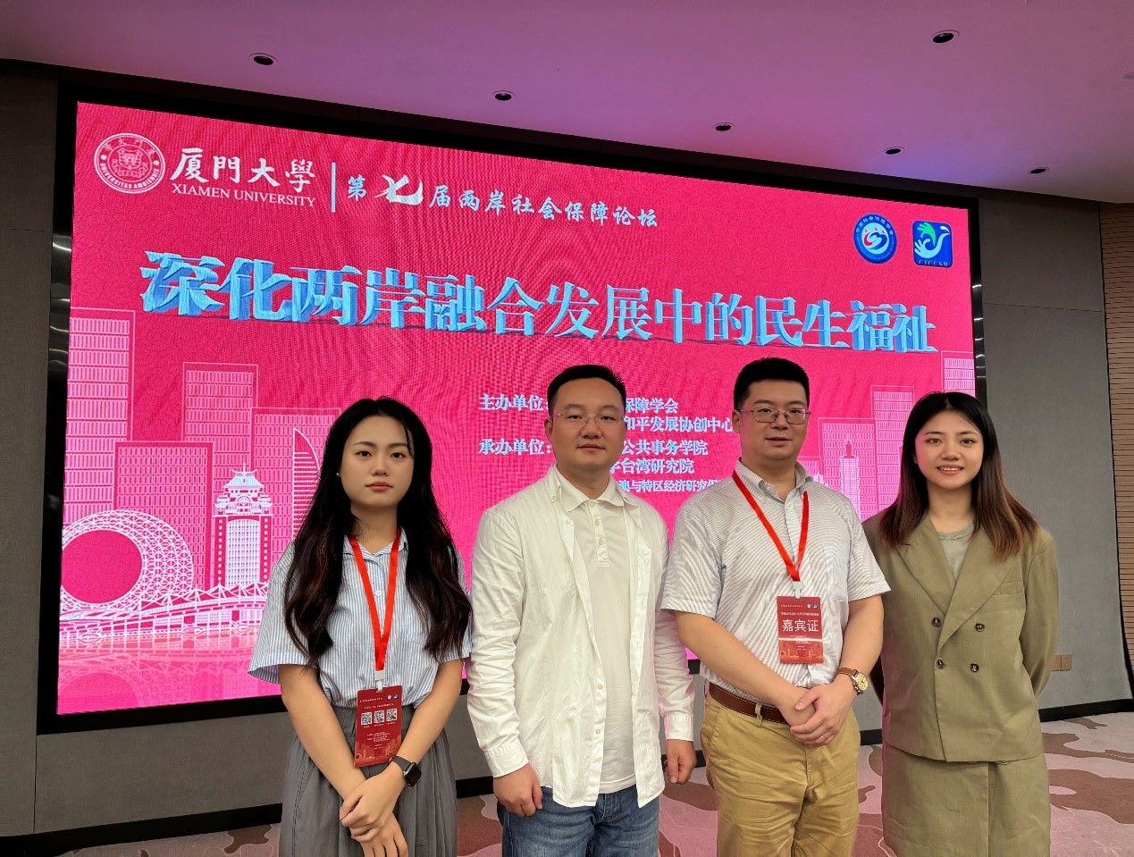 11月15-16日,由中国社会保障学会、两岸关系和平发展协同创新中心主办的“第七届两岸社会保障论坛”在厦门大学召开。本次论坛以“深化两岸融合发展中的民生福祉”为主题,旨在总结两岸民生领域融合发展、推进祖国和平统⼀进程中取得的经验,更好发挥社会保障在增进两岸同胞民生福祉、推动两岸融合发展中的作用。来自海峡两岸60多所高校、科研院所、医疗机构的近200名专家学者与会。亚博官网劳动与社会保障系林熙副教授、杨帆副教授和硕士研究生薛雅方、李亚丹等师生参会。