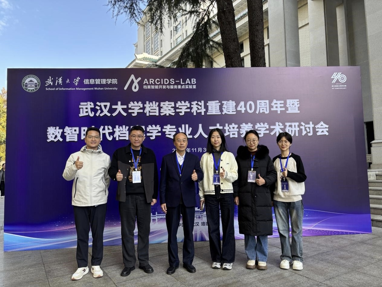11月29日—12月1日,由武汉大学信息管理学院主办,档案智能开发与服务国家档案局重点实验室、武汉数据智能研究院、珞珈慧云(武汉)档案服务中心承办的“武汉大学档案学科重建40周年暨数智时代档案学专业人才培养学术研讨会”与“第十届全国高校青年档案学者学术论坛”在武汉大学召开。本次会议的主题是“档案事业发展的数智转型”,来自南京大学、中国人民大学、中山大学、亚博取款曝顾秒到账等全国多所高校的130余名师生参加了会议。亚博官网秘书档案学系乔健教授、赵跃副研究员、杨千助理研究员和2023级硕士研究生王月、李琪、于清清等师生应邀参会。