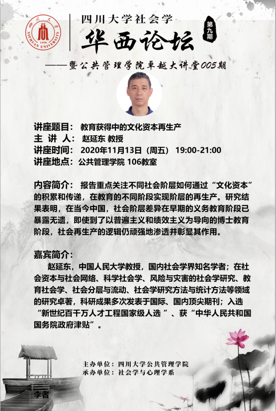 赵延东,中国人民大学教授,国内社会学界知名学者;在社会资本与社会网络、科学社会学、风险与灾害的社会学研究、教育社会学、社会分层与流动、社会学研究方法与统计方法等领域的研究卓著,科研成果多次发表于国际、国内顶尖期刊;入选“新世纪百千万人才工程国家级人选”、获“中华人民共和国国务院政府津贴”、“陆学艺社会学发展基金会第四届社会学优秀成果奖”、《社会学研究》创刊三十周年‘新锐作者奖’”。