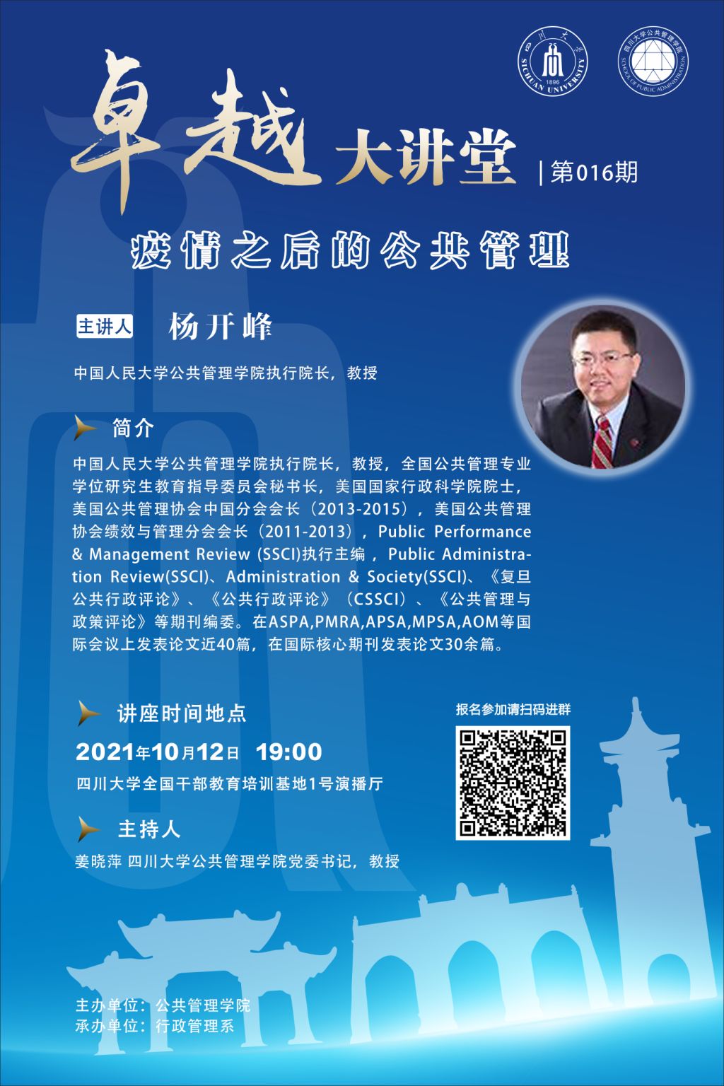 《卓越大讲堂 | 第16期——:疫情之后的公共管理》