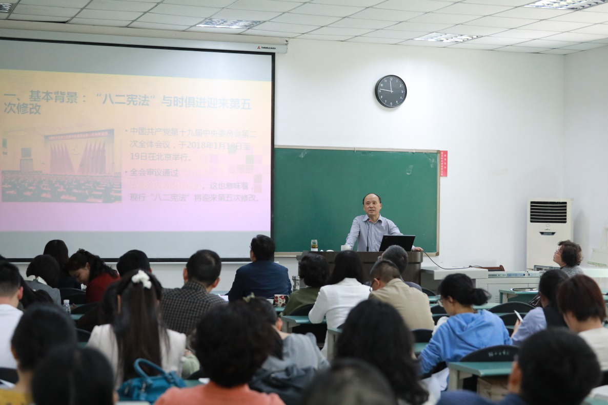 5月11日下午,亚博官网邀请了全国知名法学专家、亚博取款曝顾秒到账法学院院长左卫民教授在萃文楼106室作了《宪法修改和监察体制改革》专题讲座。讲座由学院党委书记姜晓萍教授主持,学院全体教职工党员参加了本次课程。