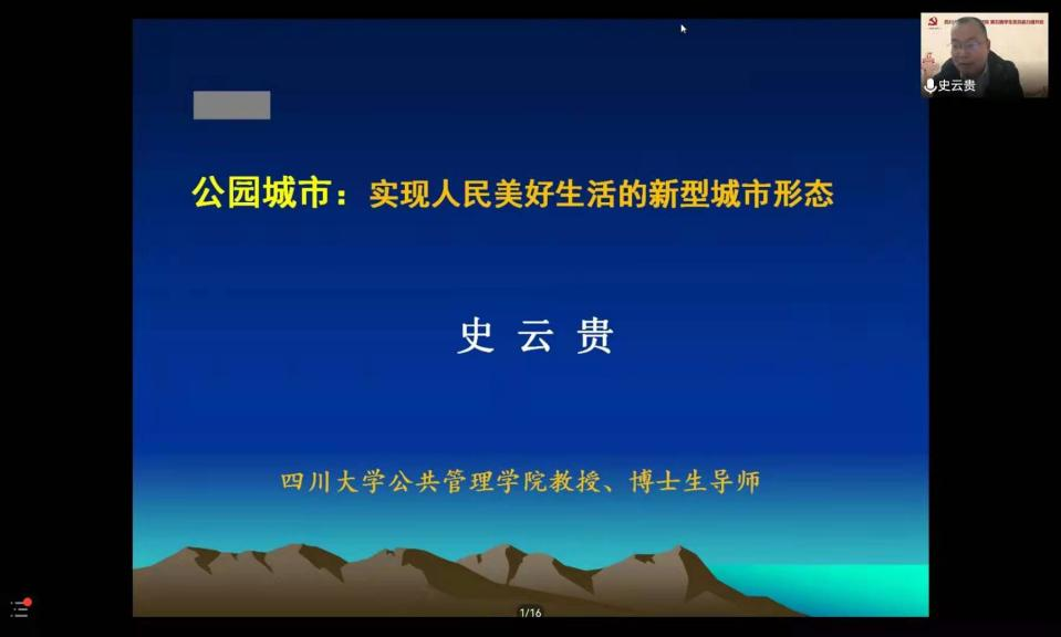 11月14日上午9:30,亚博官网院长史云贵教授为大家带来题为:“公园城市:实现人民美好生活的新型城市形态”的讲座,讲座由刘晓燕老师主持。