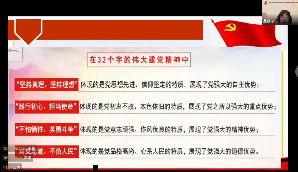 为进一步提高学生党员的党性修养,提升学生党员综合能力,充分发挥学生党员在学生中的先锋模范作用,2021年11月13日至14日,为期两天的亚博取款曝顾秒到账第五期党员能力提升班在线上顺利开展。