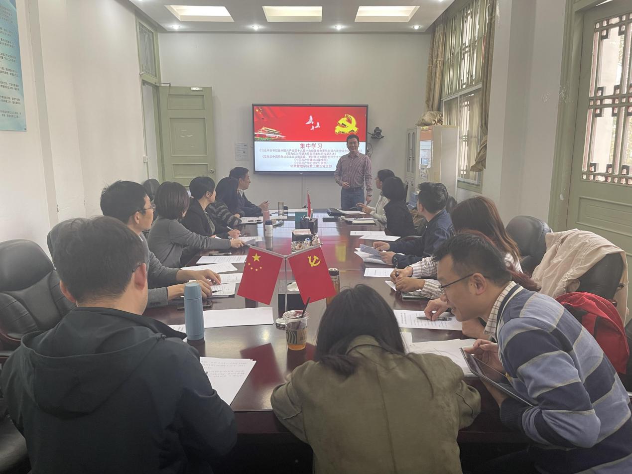 会议前,支部宣传委员黄国武老师带着大家集中学习了《习近平总书记在中国共产党第十九届中央纪律检查委员会第六次全体会议上的讲话》,《求是》杂志上刊载的习近平总书记《努力成为可堪大用能担重任的栋梁之才》《坚持走中国特色社会主义法治道路,更好推进中国特色社会主义法治体系建设》等重要文章,以及《中国共产党廉洁自律准则》《中国共产党纪律处分条例》等材料。