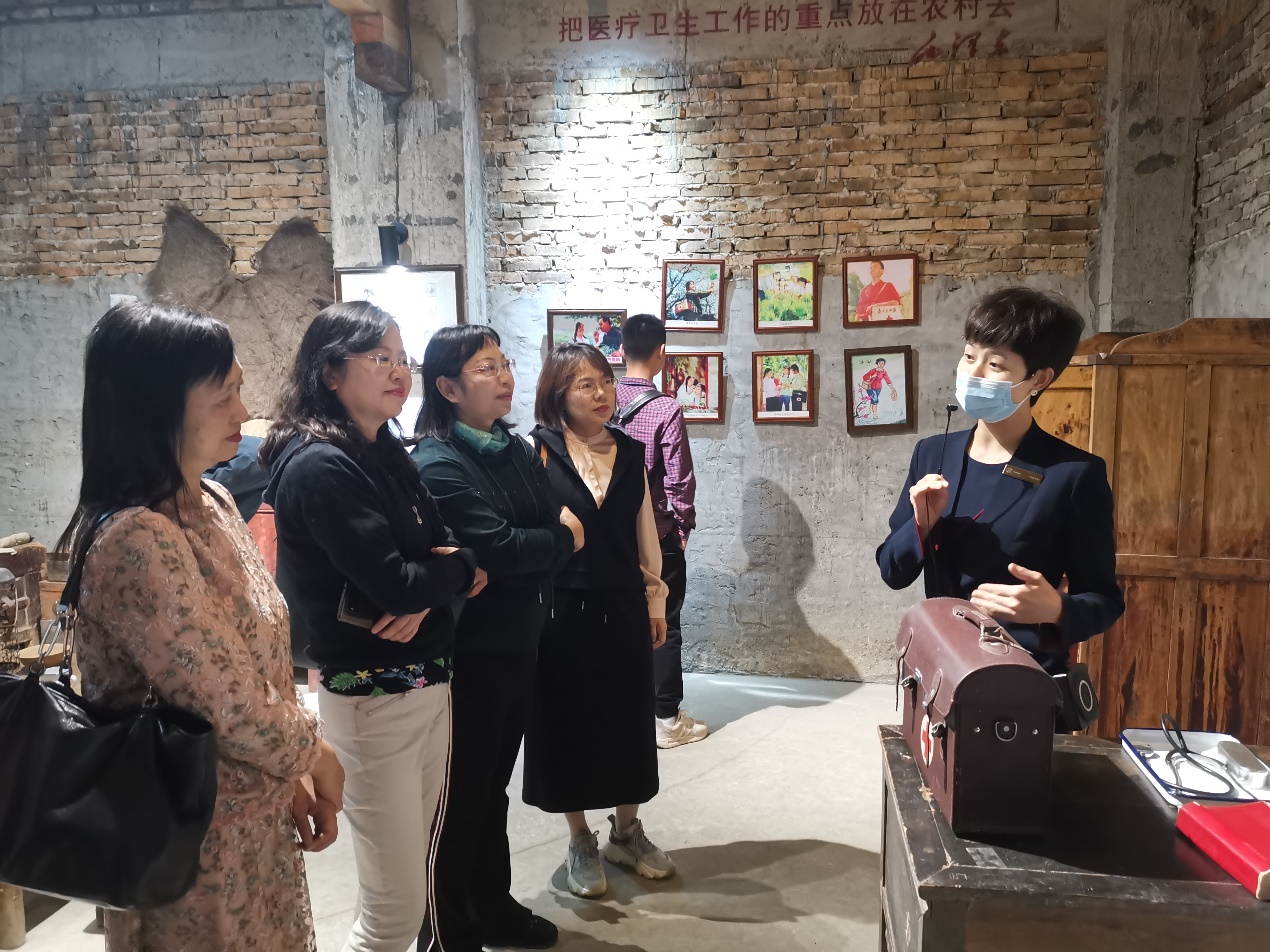 在教工一支部书记李诗颖为大家介绍了活动的目的和安排之后,老师们开始进行参观学习。首先参观了游客中心的“乡村会客厅”,全面了解天府微博村的发展历史与规划,探讨乡村振兴的机制保障和创新路径。之后,在党校讲解员的带领下,大家来到入驻文创企业之一的“五零馆”考察乡村文化研学项目。“五零馆”呈现的我国建国初期的农村风貌激起老师们的热烈讨论,场景式导览加深了大家对于农业、农村和农民问题战略重要性的思考。