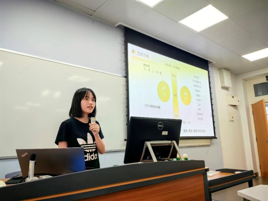 随后,兰台研习社副社长尹洁同学为学生们详细介绍了科技作品的制作过程,让同学们对科技作品的制作有了更直观的了解。尹洁同学从科研作品的选题策略开始介绍,详细从跨学科合作、大政方针、专业与热点结合等方面分享经验,同时向同学们传播了许多与小组成员、指导老师沟通的技巧,加深了同学们对科研时时间安排与交流调研重要性的理解。此外,尹洁同学也向2022级的档案学同学分享了亚博取款曝顾秒到账学术科技型社团兰台研习社的情况。