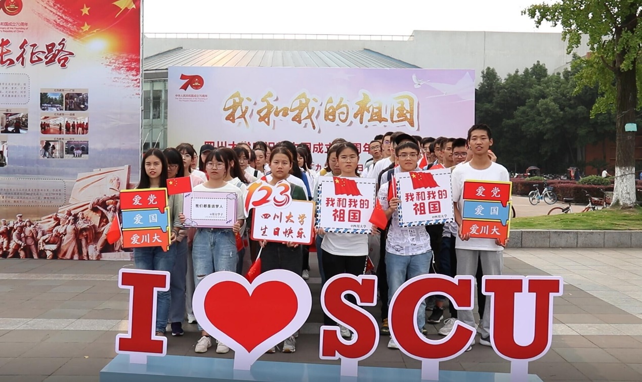 同学们挥动手中的五星红旗,在悠扬的伴奏中激情满怀共同唱响《我和我的祖国》,为祖国七十华诞献上千禧一代的贺礼。歌声洋溢着青年强、国家强的蓬勃生机,每一个音符都表达着同学们与祖国同命运、共进退的坚韧不拔之志。