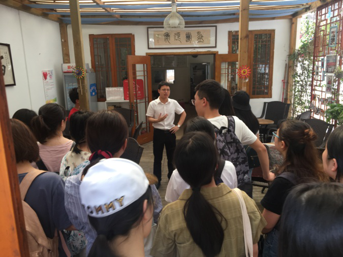 玉林东路社区党委陈智全副书记亲自介绍了社区的发展情况,展示了社区“1+4+n”的发展模式、社区专项基金的使用和管理等内容,带领同学们参观了社区极具特色的“生活博物馆”,讲述社区居民感人至深的故事。