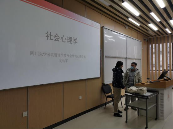 袁院长与任课老师沟通,课程:社会心理学,授课教师:刘传军