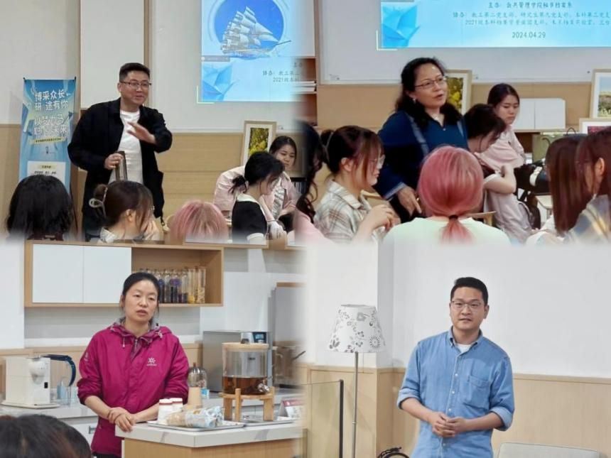 学生分享环节,钟瑞玲、牛重阳、袁绮蔓、邓淼、余悦、熊小芳等分别就考研、考公、求职、留学与保研进行了详实的经验分享。主持人转述了浦珊与董乾坤在互联网公司等企业的就业心得。